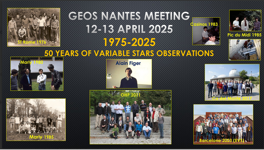 In 2025, GEOS members convened in Nantes to celebrate the 50th anniversary of the European Group on Stellar Observations. Founded in 1975—although active even earlier—GEOS marked this milestone with an in‑person meeting, making the Nantes reunion particularly meaningful for the community.